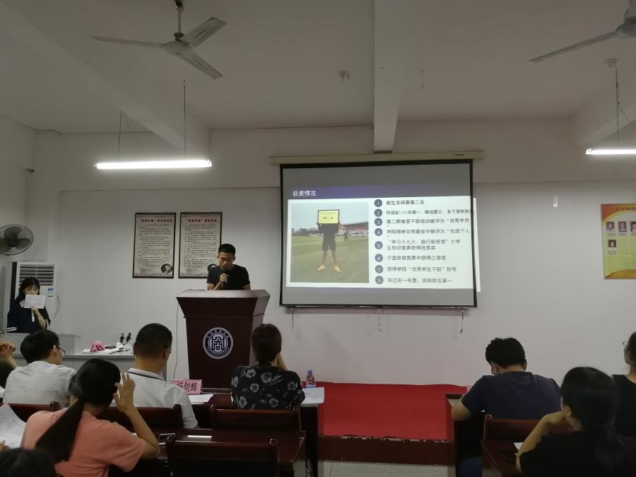 本次评选活动严格遵循了公平、公开、公正的原则。我系候选人按照抽签顺序以PPT 形式进行6分钟个人演讲,从思想、学习、工作与生活方面的表现,概括阐明竞选优势。候选人言语自信,举止从容。他们的精彩演讲不断博得在场领导、老师和同学们的掌声,现场气氛十分活跃。与此同时,评审团按照评审工作细则,根据年度综测成绩及思想道德素质等进行审核。经过多方讨论,最终来自营销162的康臻楷同学赢得了2018年国家奖学金的席位。会场内为他响起了热烈的掌声。