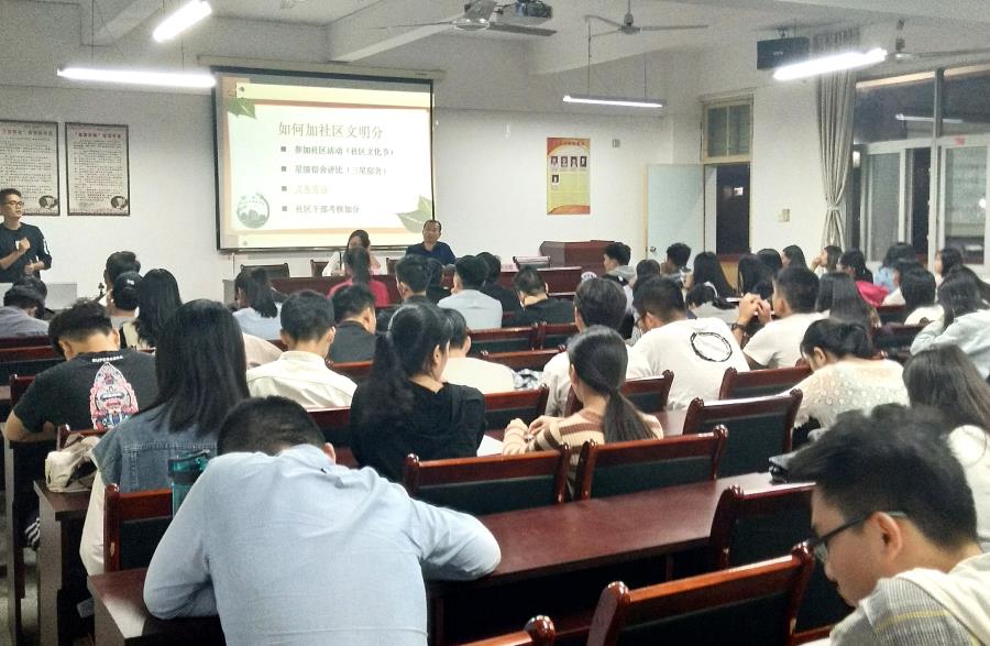 2018年10月16日晚7点在工商楼401召开工商管理系社区舍长大会。参加此次会议的有系党总支书记林宗洪老师、7号楼社区辅导员朱晴老师以及2号楼的社区辅导员王志挺老师。