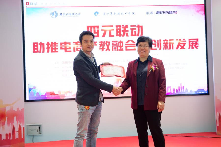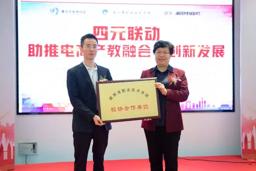 湄洲湾职业技术学院授予莆田市电商协会“校协合作单位”牌匾