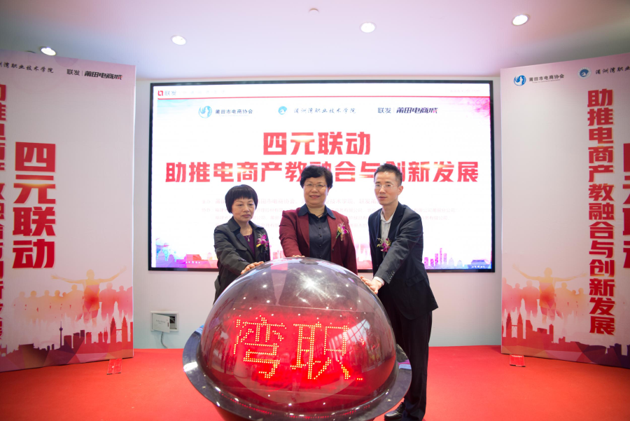 随着授牌仪式结束,活动也来到了最激动人心的时刻,湄洲湾职业技术学院院长许冬红、莆田市商务局电商科科长龚美金、莆田市电商协会秘书长林振华共同按下项目启动水晶球,标志着校企/校协合作正式启动!