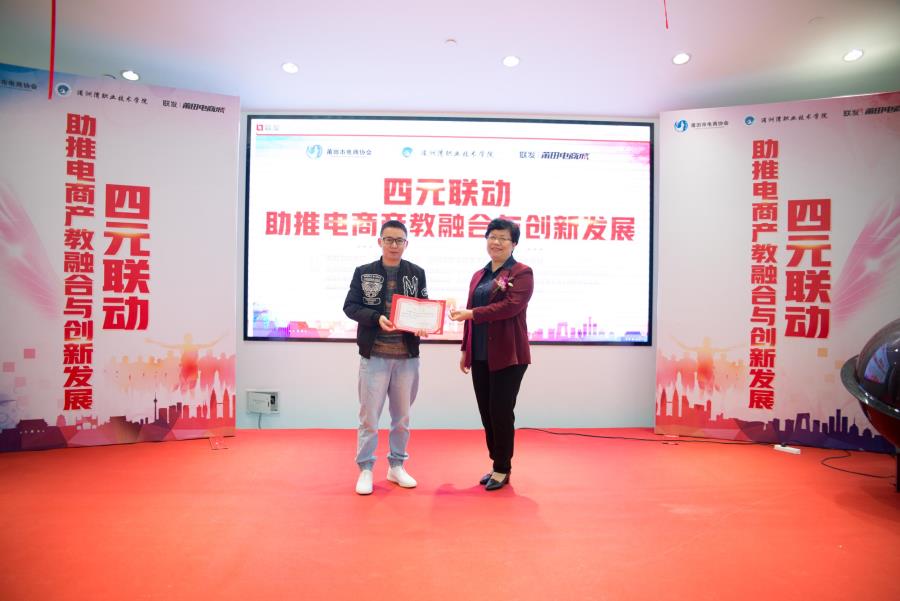 湄洲湾职业技术学院授予联发莆田电商城产业园区“校企联合培养基地”牌匾