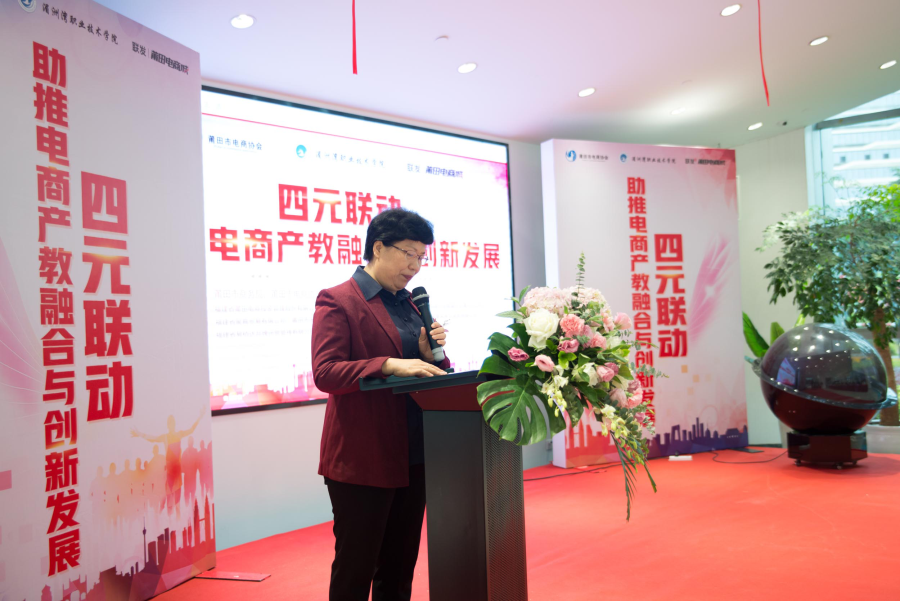 2018年11月2日上午,湄洲湾职业技术学院院长许冬红、莆田市商务局电商科科长龚美金、湄洲湾职业技术学院招就处处长/产学研与实训中心主任蔡雪敏、城厢区商务局副局长林君、湄洲湾职业技术学院校企合作办主任陈光明、安福电商城管委会副主任郑颖英、副主任陈慕珊、湄洲湾职业技术学院工商管理系主任方丰霞及五所莆田中职院校和企业代表共同参加了签约授牌仪式暨财经商贸类行业职业教育指导委员会研讨会议。高职院校、市商务局、电商协会、电商企业四元联动、优势互补、合作共赢,推进产教深度融合,加快转型发展。