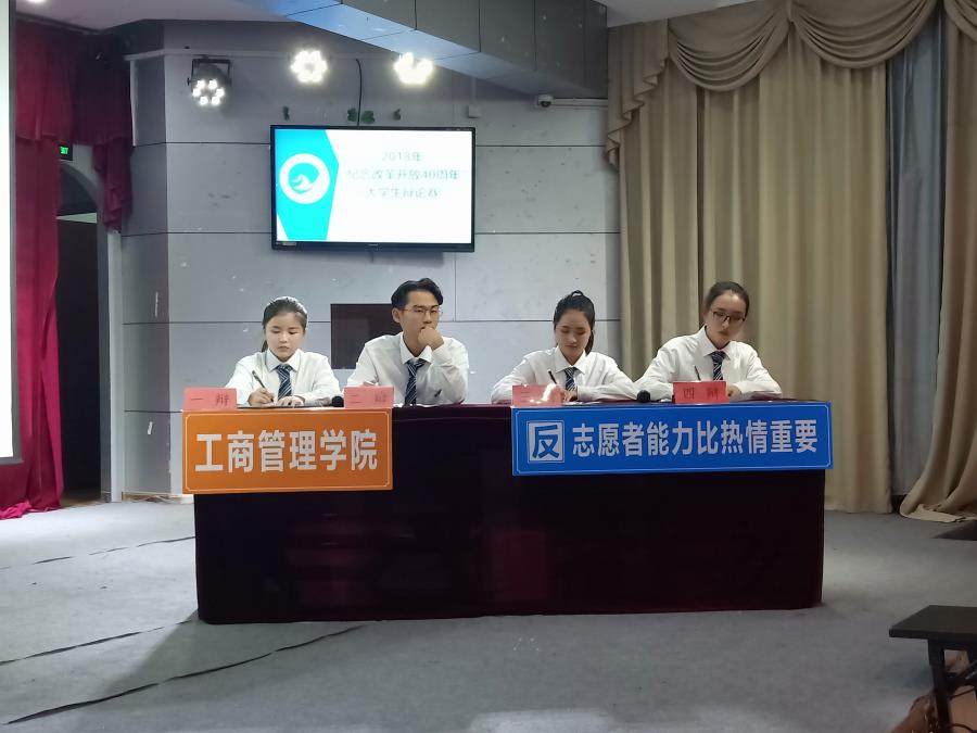 2018年11月13日晚上7点,于17号楼201室举行了湄职院“纪念改革开放40周年”新生辩论赛半决赛,出席此次比赛的评委老师有学院团委副书记李超老师,办公室李慧颖老师、基础部连超凡老师,此次辩论赛由工商管理系对阵自动化工程系,双方辩手围绕“志愿者能力与热情哪个更重要”的话题展开辩论。