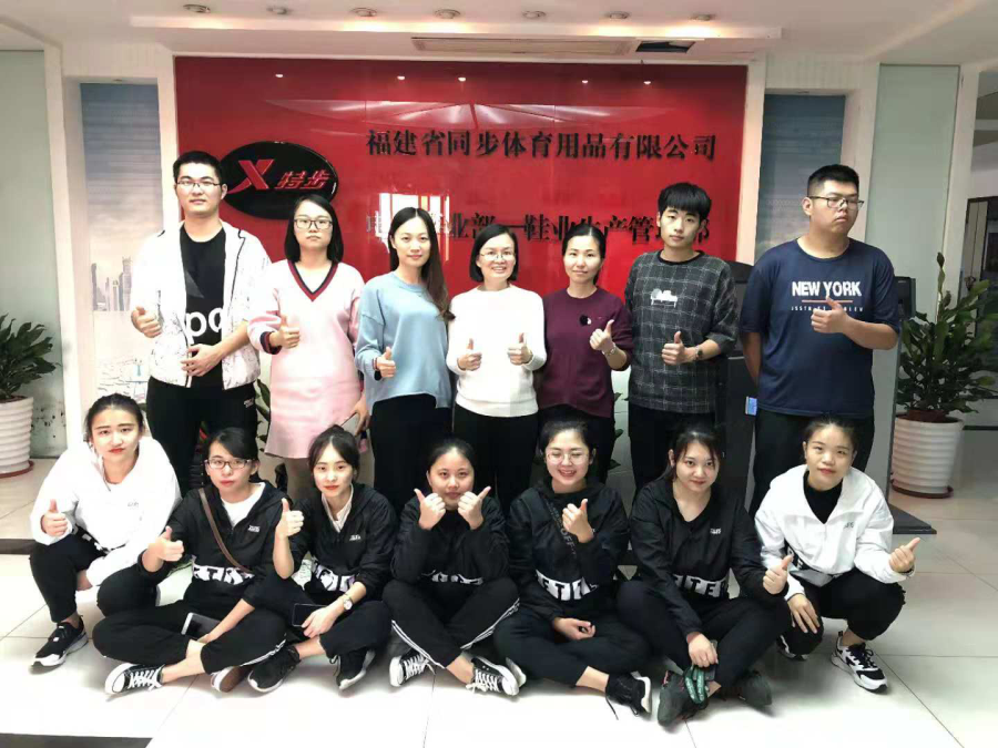 2018年11月21日,工商管理系市场营销教研室黄智萌主任、陈丽晶老师、谢小兰老师一行三人前往特步泉厦分公司参加市场营销专业学生跟岗实训总结会。
