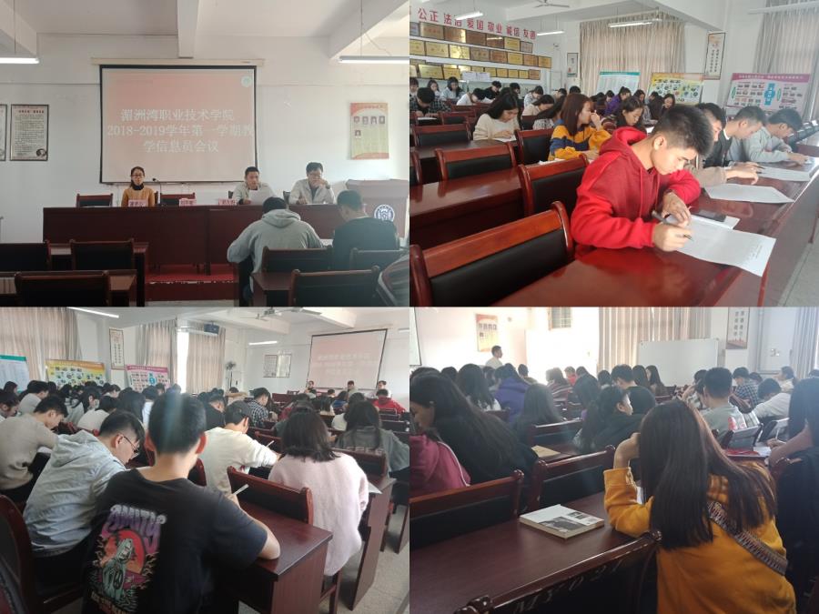 2018年12月11日下午两点三十分在25#401教室召开学院组织的教学信息员会议,出席此次会议的有谢冰心老师、刘开敏老师、邱兴阳老师,以及2017、2018 级各班班干部。