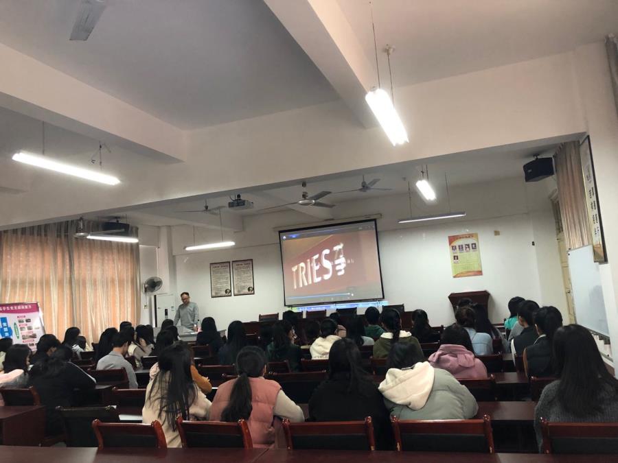 2018年12月11日晚7点在25#401教室校企合作办主任徐建、行政秘书朱晓宇组织17级工商系学生观看企业视频。