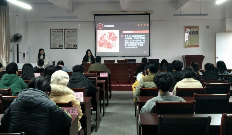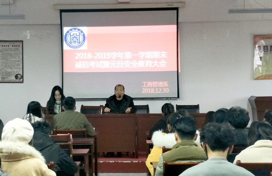 2018年12月30日下午我系在25#401会议室召开了2018-2019学年第一学期期末诚信考试暨元旦安全大会。系党总支书记林宗洪、分团委书记郑雪凝老师出席了本次会议。