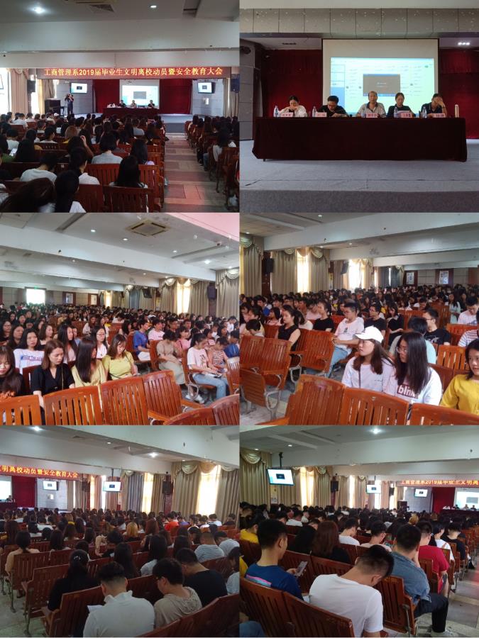 2019年6月26日上午10点在17#201室召开“工商管理系2019届毕业生文明离校动员暨安全教育大会”。参加此次会议的有系党总支书记林宗洪、系主任方丰霞、系副主任刘伟、物流教研室主任徐建、辅导员翁梦星及16级全体学生。