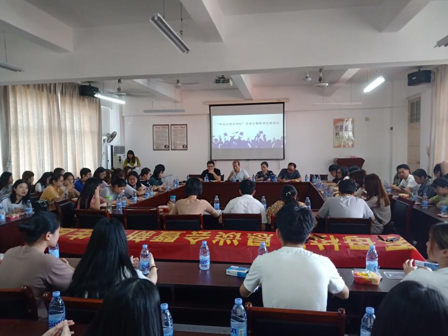 此次会议分为四部分,一、观看禁毒宣导片。二、学生信息反馈座谈会,优秀毕业生代表上台分享自己的大学生活的经历与努力。三、新老生交流座谈会,对于新生的问题,学姐学长细致讲解,还就学习和工作中遇到的问题提出了自己的观点和看法,并结合自身经验,为刚步入大学的学弟学妹们提供了宝贵的经验。四、由书记、主任对新老生的学习工作方面作总结。方主任将学姐学长们分享的经验进行以下总结,第一点师生情,若是在生活中、工作中遇到问题可以向老师寻求帮助、咨询意见,老师永远是你们坚持的后盾。第二点同学情很重要,同学间要常联系。第三点学会角色转变,沟通能力很重要,做好本职工作之余帮助领导、同事。第四点学习很关键,对待生活要积极健康向上。最后书记就自身经验给予19届毕业生宝贵经验,要树立正确的人生观,注意如何保护自己,不参与赌博、毒品,树立正确的就业观,要养成良好的学习习惯,常与母校联系。
