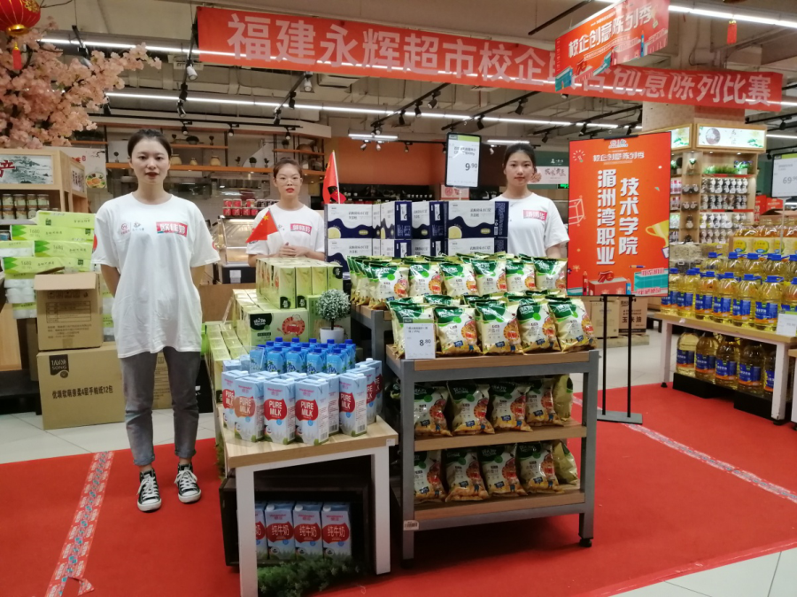2019年10月10日,工商管理学院市场营销专业的欧佳婷、郭晓玲、汤清华三位同学在林欣欣老师的带领下前往福建永辉超市福州奥体店参加2019年福建嘉年华校企创意陈列秀技能大赛,谢小兰老师作为观摩教师列席比赛。