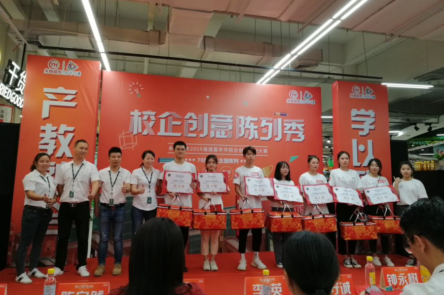 本次比赛由永辉超市主办,各院校协办,参赛选手来自福建省内各地市的10所院校。赛前一个月,选手们在各自学校就近的门店进行基础技能的培训,比赛当天,主办方还组织了针对性的赛前集训以及答疑环节强化参赛选手的专业知识和实操技能。比赛过程中选手们要进行商品挑选、道具准备、陈列设计、堆头摆放、细节修饰、成品汇报等多个环节,全程历时3个小时。我院学生在此次比赛中积极投入、沉着应对,特别在团队协作和细节修饰方面获得了评委老师的一致好评。虽然最后在商品挑选和层次摆放方面略有失分仅获得了优秀奖,但她们赛出了风格,赛出了水平,同学们都感觉受益匪浅、不虚此行。