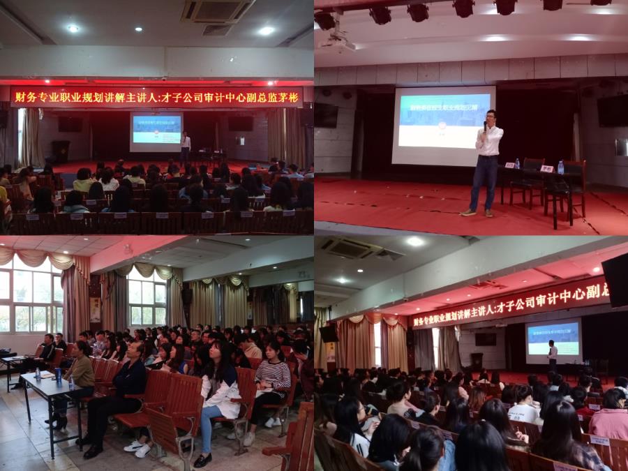 2019年11月27日下午4点10分,才子服饰股份有限公司审计中心副总监茅彬在17#201为我系17级会计专业学生做财务专业职业规划讲座。参加此次讲座的有系主任方丰霞、系党总支书记林宗洪,会计教研室主任郑宗旭老师。