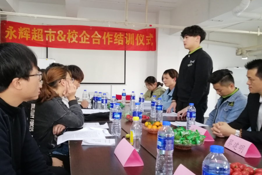 总结会上,永辉公司莆田区域总经理陈永城先生代表永辉公司对老师们的到来表示欢迎,感谢学校的信任能将学生放到永辉的平台上来锻炼,对同学们三个月来的表现给予了高度肯定,并鼓励同学们树立目标、敢讲敢闯,用自己的实力去拼搏,一步步地实现成长。