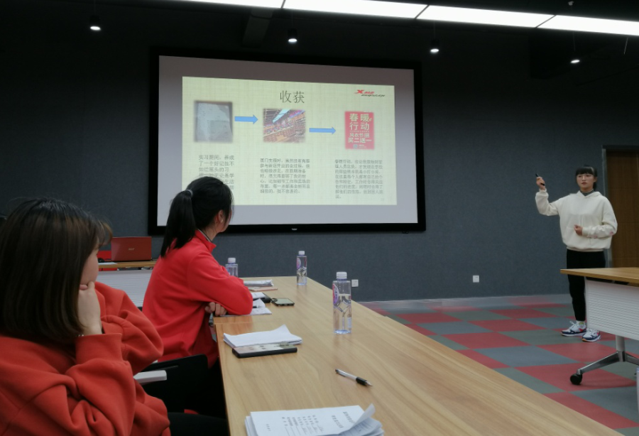 同学们汇报结束后,方丰霞主对每一位同学的汇报进行了逐一点评,肯定大家的成长,也对同学们提出了更高的要求,希望他们在工作中能够善于发现问题,及时进行总结,获得提升。黄智萌老师也指出同学们虽然有所进步,但是不能骄傲自满,还需要进一步的沉淀,做好职业生涯的长远规划。特步泉厦分公司直营部杨耀星经理发言感谢各位同学这三个月实习工作中的辛勤付出,他期望大家能够再接再厉,努力适应环境,也告诉大家特步会为储干提供很多学习和成长的机会,希望大家抓住机会,努力成长!