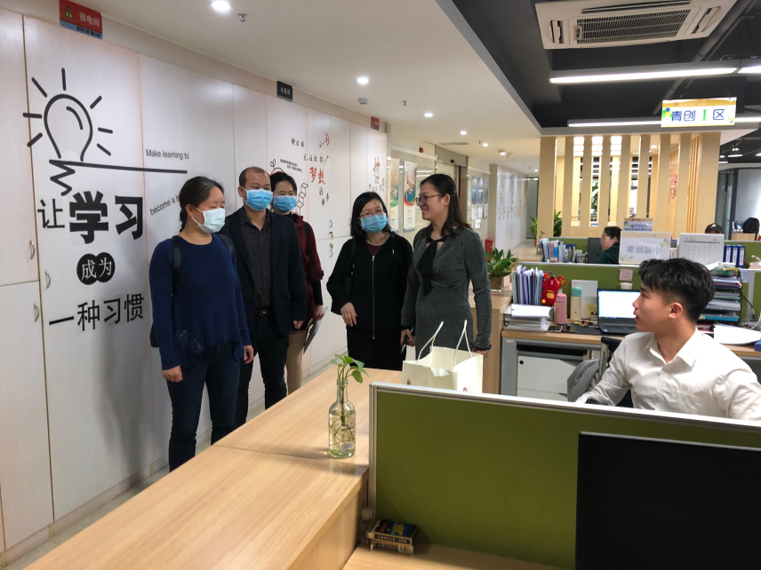 2020年4月20日,为做好“十四五”发展规划编制工作,湄洲湾职业技术学院工商管理系党总支书记林宗洪、系主任方丰霞,教研室主任黄智萌、实训室主任洪黎敏、行政秘书朱晓宇等人来到青创未来集团有限公司进行调研,由青创未来集团院校服务事业部总监林清香陪同。