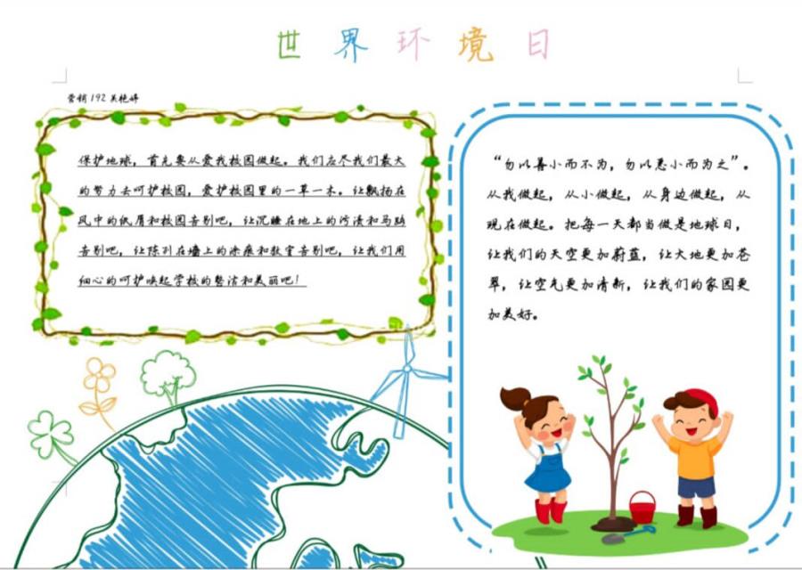 在2019年,世界环境日的主场活动设定于我国杭州举办,这体现了我国作为一个世界性大国肩负起了符合其地位的责任与担当。时隔一年,国家依然在坚持推进保护环境的相关政策,而我们,作为祖国的一代青年,也应当负起自己力所能及的社会责任。
