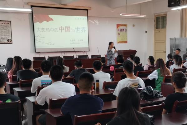 在课堂上,方丰霞主任围绕“深刻认识百年未有之大变局”“大变局中机遇与挑战同生并存”“大变局中的中国角色”等三方面内容,结合国际力量、、世界格局、科技改革、大变局催生新的机遇与挑战、中国的发展的内涵、自身发展、国际合作等,为学生带来了一场精彩讲座。