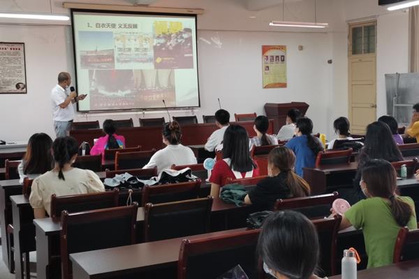 在课堂上,林宗洪书记结合2020年疫情情况,分别围绕“统一领导,总揽全局”“众志成城,凝聚中国抗疫力量”“抗疫献力,年在行动”“我们在这次疫情中,我们能做些什么?”等四方面内容,为学生带来了一场感恩、爱心、责任、爱国主义的精彩讲座。强调学生要有一颗感恩的心,感恩于帮助我们的人、感恩于我们的伟大祖国;要有爱心,为需要帮助的人提供帮助;要有责任心,落实疫情期间肩负的责任,不要给他人增添麻烦;要热爱祖国,毕业后报效祖国和社会。
