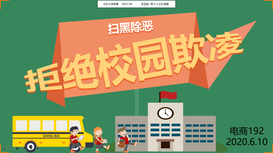 同时,我系还组织各班团支书,以“扫黑除恶,拒绝校园欺凌”为主题,召开一次班会进行宣传,通过线上直播的方式,让同学们了解扫黑除恶的重要性和对社会、个人的积极意义,以此调动同学们参加活动的积极性。