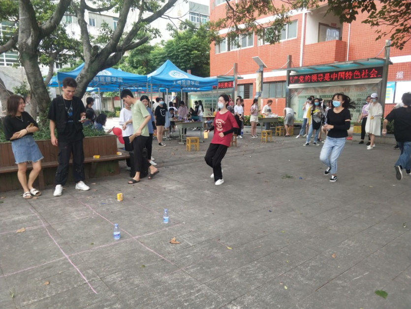7月5日下午16:30时许,全体工商系学生与图书馆对面广场集合,在工商管理系分团委学生会的有力组织下,拉开了户外素质拓展活动的帷幕。此次活动项目分为同学自由组合活动与以班级为单位的集体活动两种。首先是自由组合队伍活动,共有六种娱乐项目:“快到桶里来!”、“倒跑比赛”、“赶"猪"跑”、“步步为营 ”、“信任行走”、“来点啥?铁汁”。自由组合队伍活动促进参赛的同学们相互沟通交流、相互信任、默契协作、培养合作意识。以班级为单位的项目活动分别为:“占领地盘”、“让拖鞋飞一会”。班级为单位的活动让同学们群策群力,互助互信,积极沟通,充分发挥了以班级为集体的团结协作精神。