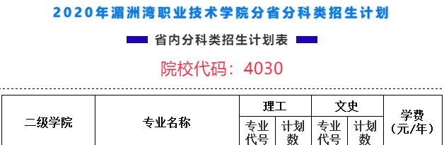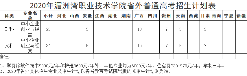 2020年湄洲湾职业技术学院工商管理系分省分科类招生计划