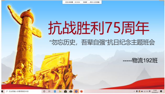 今年是中国人民抗日战争暨世界反法西斯战争胜利75周年。近日,我系开展以“勿忘历史,吾辈自强”主题教育,全体工商管理系学生参与此次活动。本次活动的内容主要通过主题班会课与线上知识竞答形式开展。