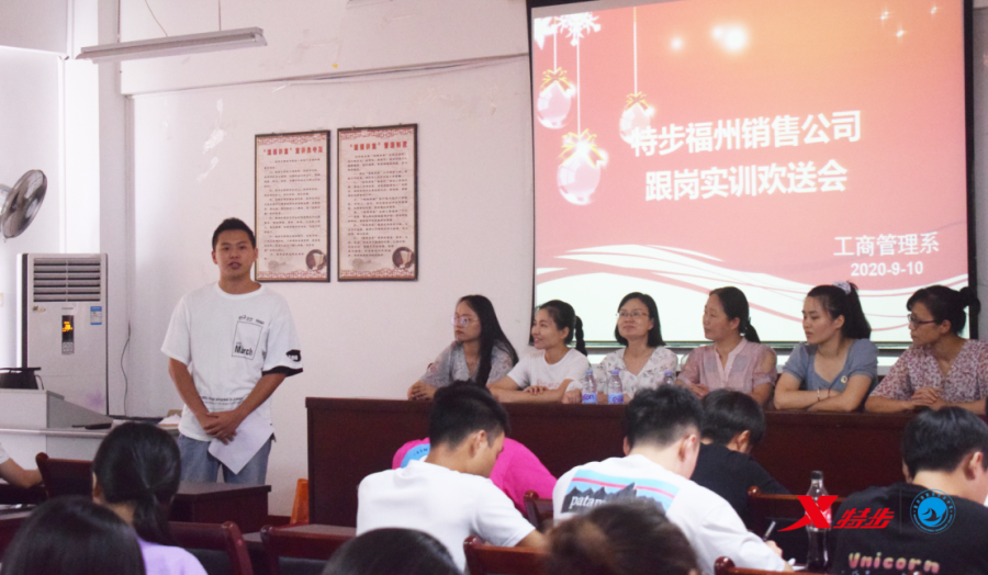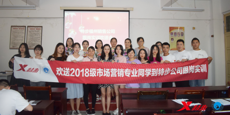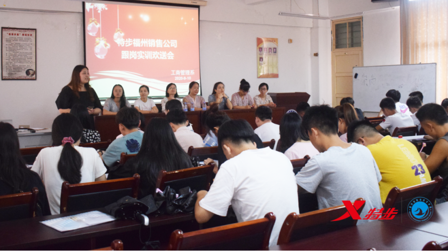 2020年9月9日上午,工商管理学院在枫亭校区25号楼401欢送2018级市场营销专业的13位同学前往特步福州销售公司进行跟岗实训。