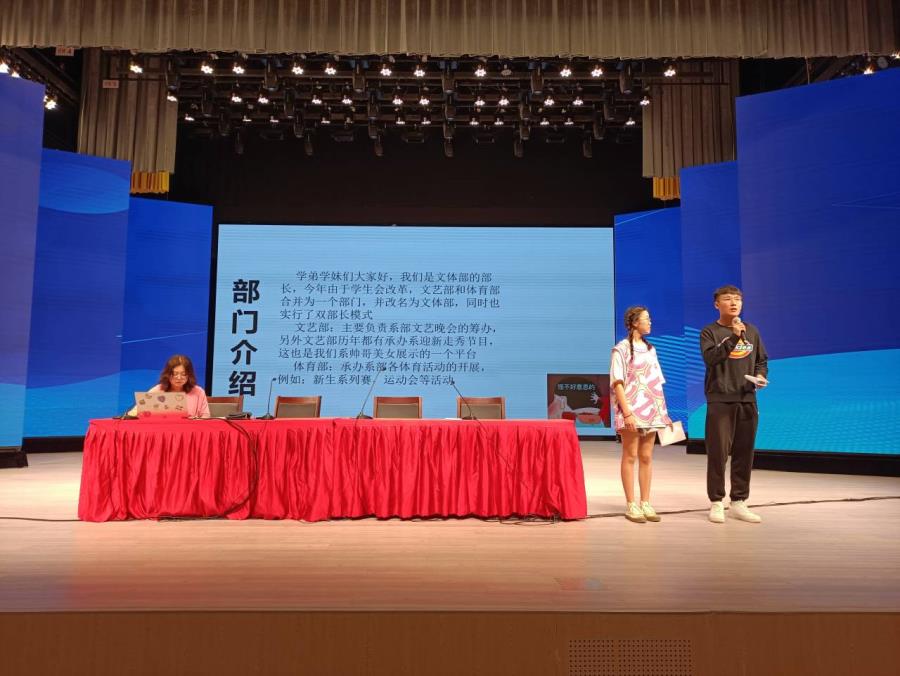 纳新大会上,各个部门部长、协会会长、社长通过幽默诙谐地发言,详细介绍各个部门、社团、协会的相关职能与各自部门在学生会所处的位置,并在各部门、协会发言结束后进行了答辩环节,有各协会指导老师,各部门部长,为每一位想加入学生会这个大家庭的新成员解答,为他们在加入前指明一条心仪的路。在各部门纳新发言中,现场气氛热烈,掌声不断,充分体现了大一同学们的激昂斗志,积极的理想追求。