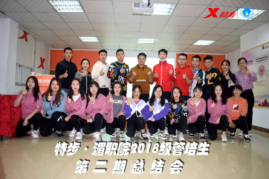 会后,特步福州公司副总、各区域区长、人资主管、培训讲师与参会的全体师生合影留念。