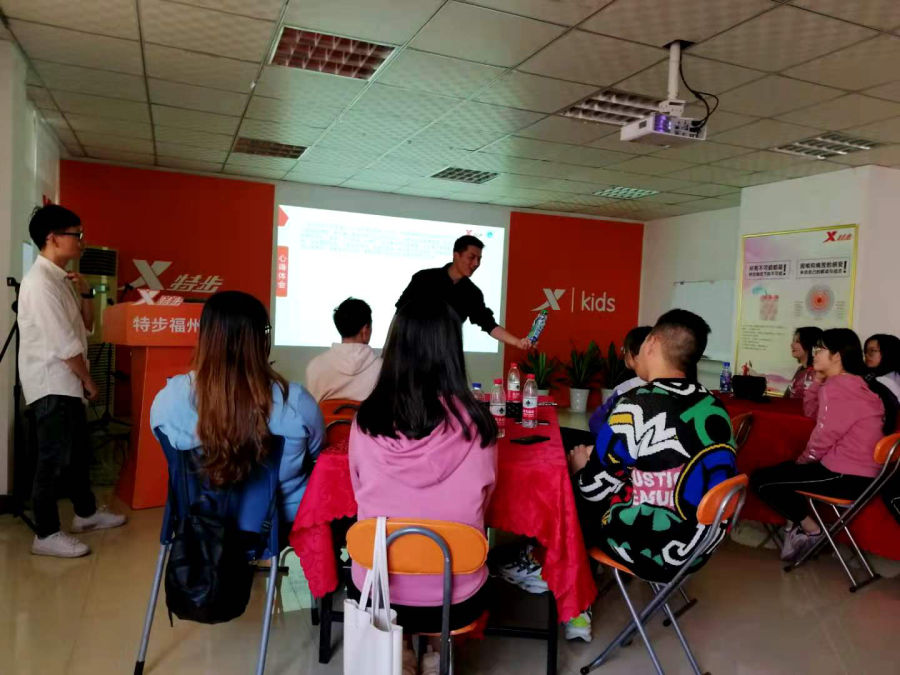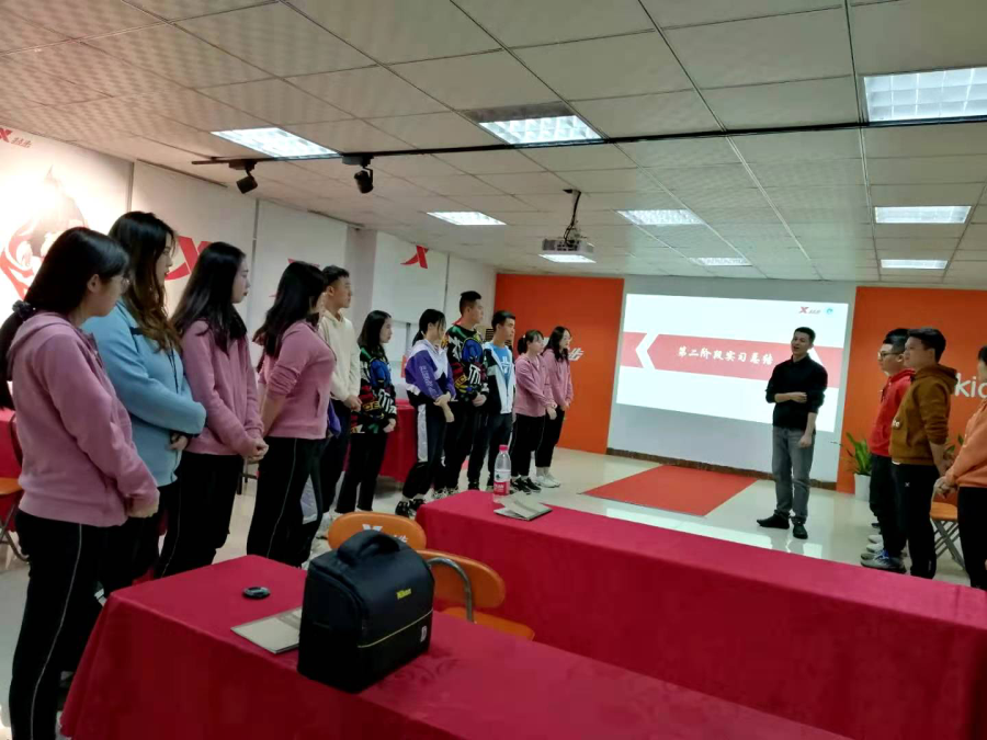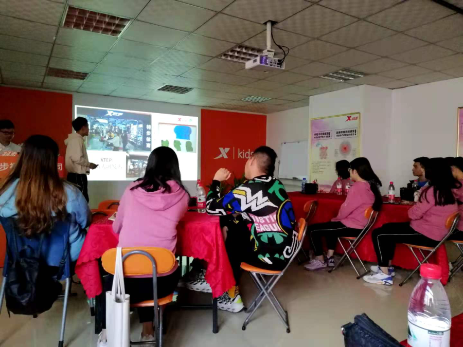 特步福州公司副总林超敬全程参与总结会,并不时地与同学们分享销售技巧和店铺运营经验,肯定同学们销售力的提升,指出大家目前运营力的不足之处,并为大家规划下阶段的实训目标。