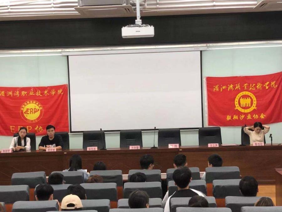 2020年11月17日下午16时20分至17时10分,沙盘/ERP协会换届大会于行政楼南403会议室顺利召开,会计教研室主任郑宗旭,ERP协会指导老师陈丽琴,沙盘协会指导老师王立声、陈佳钦与协会所有成员出席了此次会议,会议由学生会执行主席任欢欢主持。