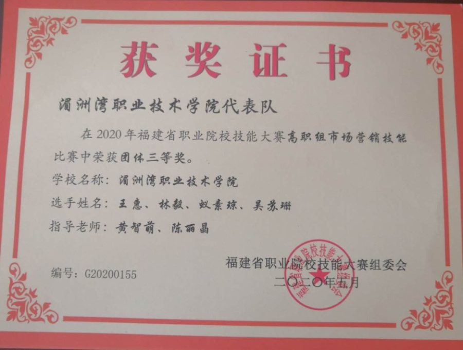 营销专业学生参加2020年福建省职业院校技能大赛获得市场营销技能赛三等奖