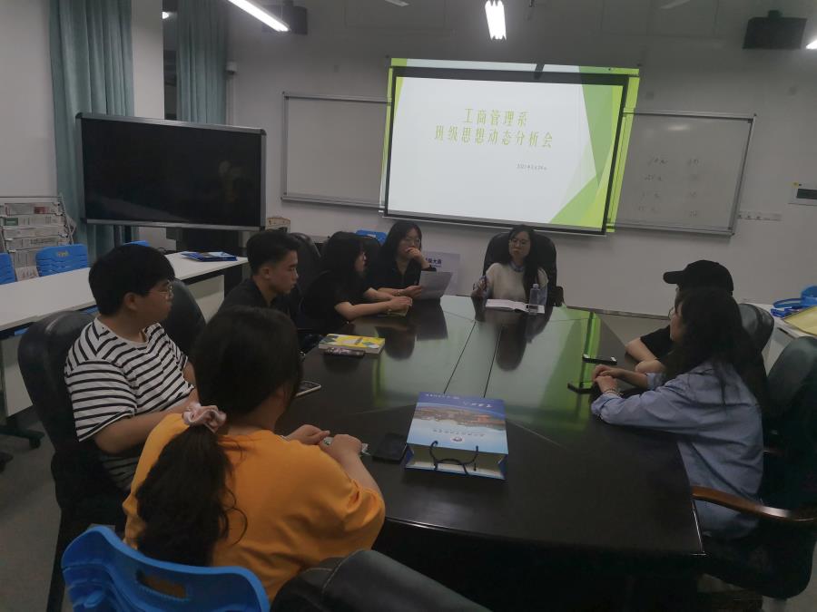 2021年3月29日,工商管理系各辅导员对各分管的班级开展班级思想动态分析会,参与此次分析会的有19、20级各班班长。