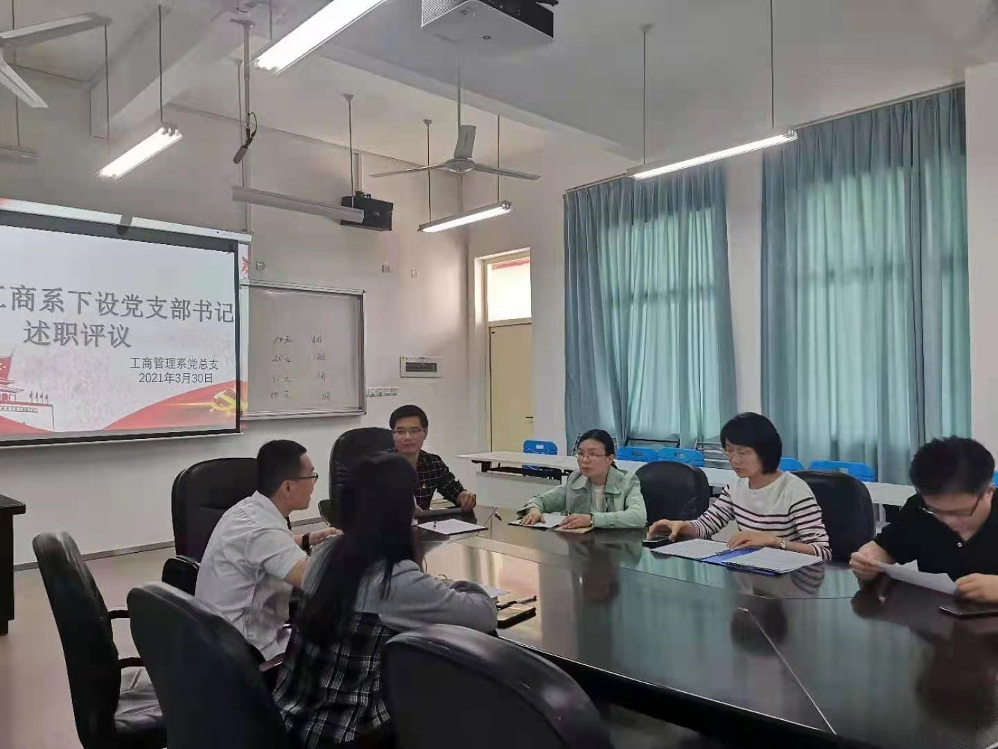 2021年3月30日上午,工商系党总支在公教二南301召开下设党支部书记述职评议会议。总支委员与部分教师党员代表参加会议。