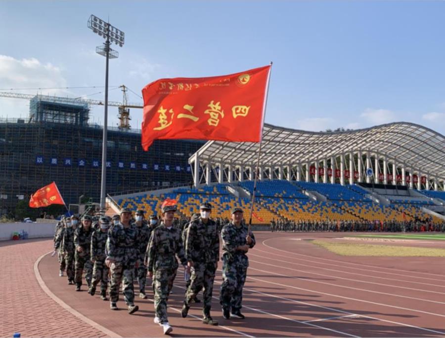 工商管理系参与2021级新生军训拉练活动