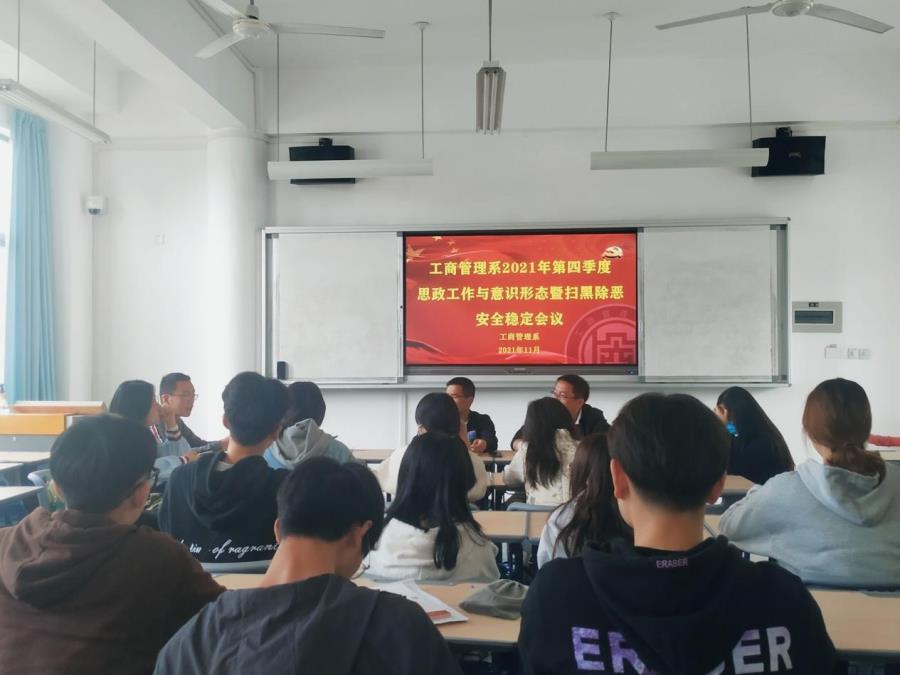 工商管理系召开2021年第四季度思政工作与意识形态暨扫黑除恶安全稳定会议