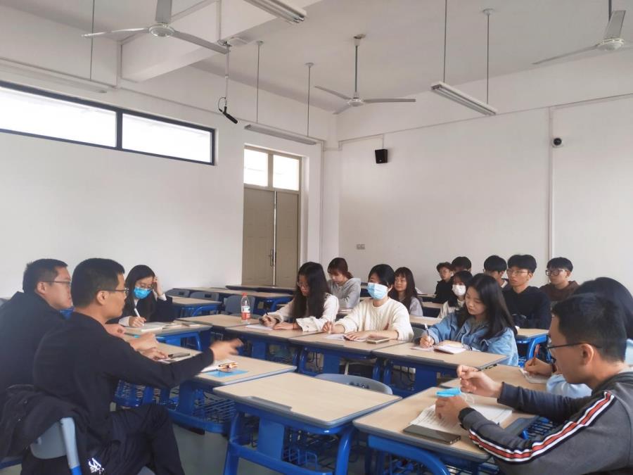 会上,许志敏书记交代了会议的主要议程,表明召开此次会议的目的以及今后大家要努力的方向。随后,林涵羽等系部辅导员就班级学风建设、宿舍管理、参加主题班团会等工作一一进行汇报并就高校思想政治辅导员工作职责进行交流讨论。辅导员们表示会在保障学生身心健康的基础上,更加注重引导学生建设良好的班风学风。接着,许志敏书记向学生代表了解学生在校学习生活的情况,并叮嘱学生抽空锻炼身体,注重身体健康和校园安全。此外,许志敏书记强调维护学院意识形态安全、校园安全稳定与认真贯彻扫黑除恶工作必要性。最后,许志敏书记提醒同学们要时刻遵守校规校纪,注意言行举止。
