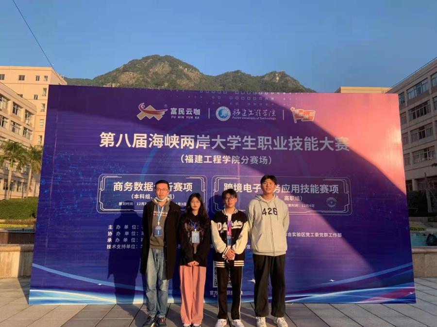 212月4日,由福建省教育厅主办的第八届海峡两岸大学生职业技能大赛《跨境电子商务技能》赛项竞赛在福建工程学院举行。工商管理系曾少坤、柳欣彤,彭彬斌三位参赛学生,在指导老师刘忠德的带领下,前往福建工程学院参加本次竞赛。