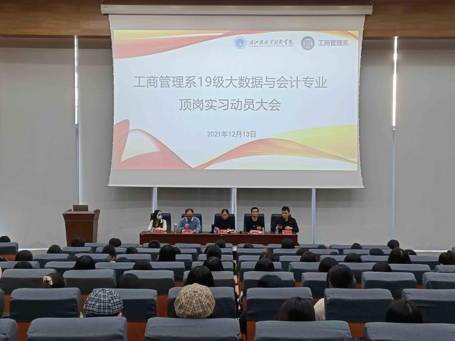 为确保工商系19级会计专业学生顶岗实习顺利有序进行,引导我系学生做好顶岗实习前的各项准备工作。我系特于20211213日下午在信息楼330报告厅举办19级会计专业顶岗实习动员大会。出席本次会议的有工商系主任方丰霞、工商系党总支副书记许志敏、工商系副主任徐建、会计教研室主任郑宗旭、辅导员谢益晶及19级会计专业全体同学们。