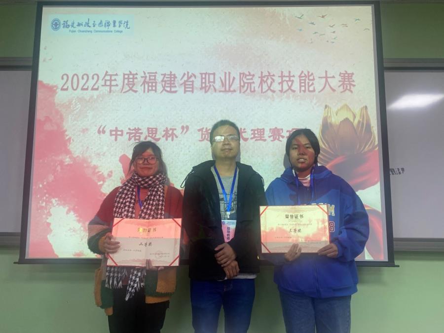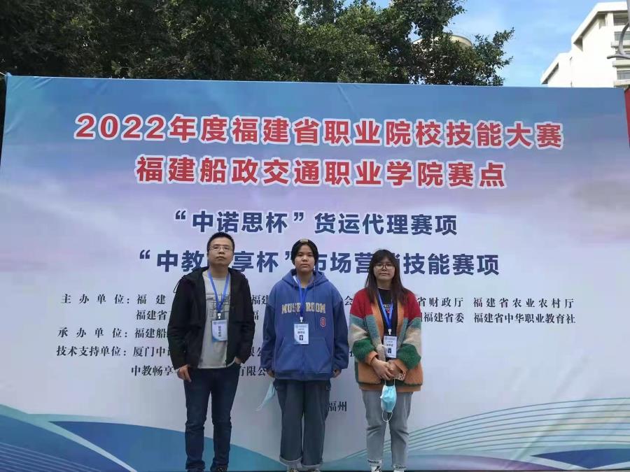 2021年12月30日,由福建省教育厅主办的2022年福建省职业院校技能大赛(高职组)“货运代理”赛项竞赛在福建船政交通职业技术学院举行。我院工商管理系戴玉珍与卢烨铃两位参赛学生,在指导老师王立声的带领下,前往福建船政交通职业技术学院参加本次竞赛。