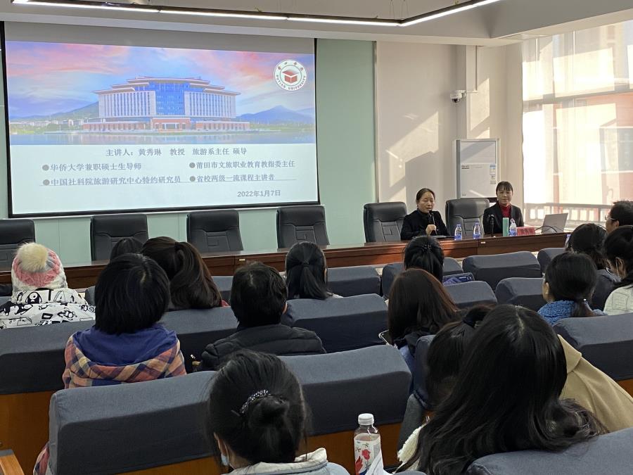 为了提升教师精品在线开放课程的申报和建设水平。2022年17日下午,工商管理系行政楼中403举办职业教育精品在线开放课程申报与建设讲座。本次讲座邀请了莆田学院省校两级一流课程主讲者黄秀琳教授主讲,讲座由工商系主任方丰霞主持,工商系全体教师和其他院系部分领导和老师在座聆听。