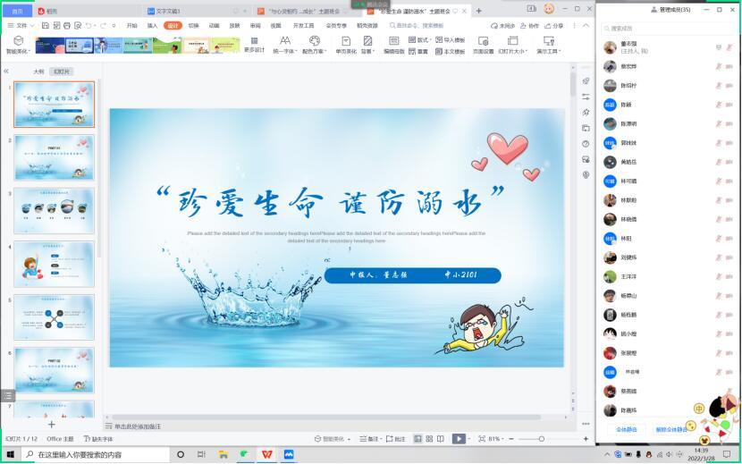 临近夏季,伴随着气温升高,溺水事件愈发层出不穷,为了增强工商管理系同学们的防溺水意识,提高应急脱险能力,减少违反安全原则的行为。湄职院工商管理系特于2022年3月28日组织20级、21级全体学生开展线上“珍爱生命,谨防溺水”主题班会活动。