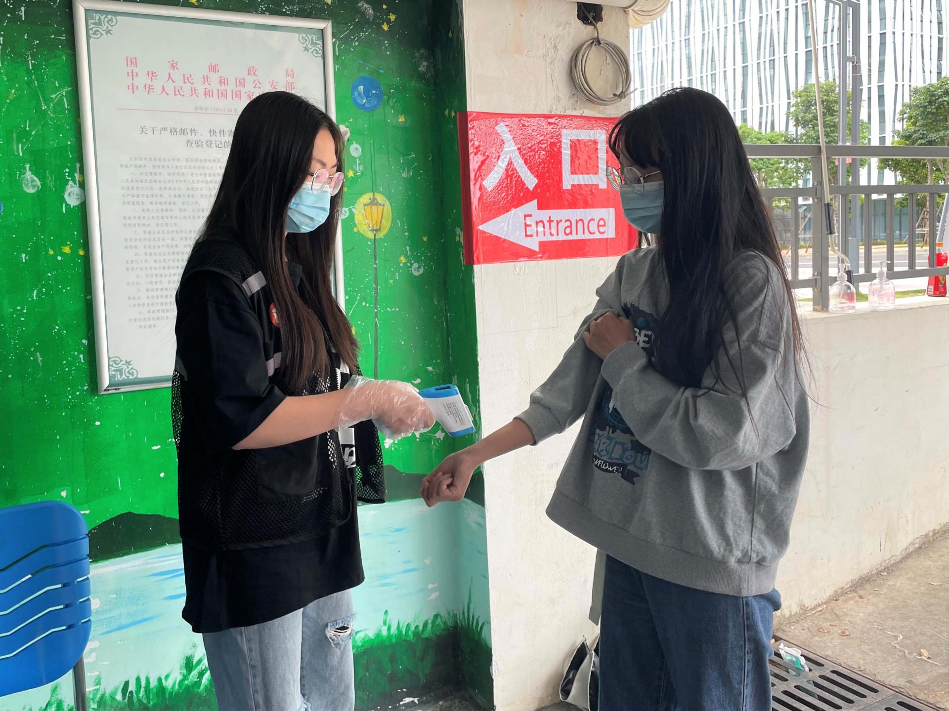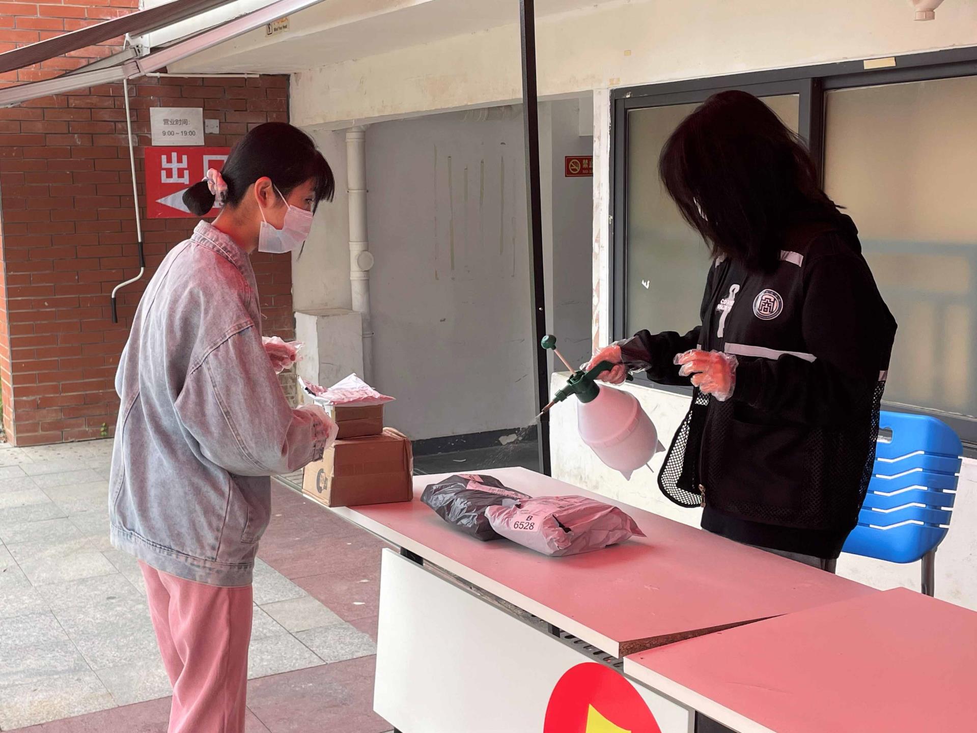 为了确保疫情防控工作安全、有序,我系每日招募26位志愿者,负责物流车和快递第一轮消毒、监督口罩佩戴、体温测量、快递现场拆包消毒等流程。“同学,请保持一米以上距离。”“同学,请戴好口罩及手套再进入快递站”……烈日下,在快递站入口,志愿者们维持来往人群的秩序,提醒和劝导同学们做好个人防护。而在快递站出口,志愿者们全程佩戴好医用口罩和手套,在户外通风良好的地方用酒精对快递外包装进行全面喷洒消毒后交给同学们,同时引导同学们取件后不带走外包装,在包裹拆件区拆卸包装,做好手部消毒及垃圾分类后再离开快递站。在场同学们也保持防疫自觉性,没有丝毫懈怠和侥幸心理,严格遵守防疫准则,积极配合志愿者们的工作。