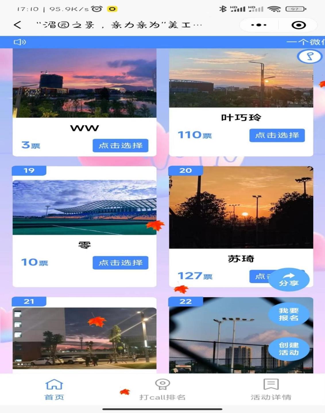 在美工网店摄影设计大赛中,同学们积极报名参与大赛,纷纷定格住了各个角落的湄园靓丽风光。参赛同学们用自身拍摄技术与美工设计相结合来参与大赛,使同学生借此能更好的提升自己的相关技能以及审美。夕阳余晖下,湄园的温柔被落日霞光所照耀着形成一幅静谧动人的静态画。在本次大赛中,参赛选手们在公正公开的线上投票制度之下获得湄园同学们的欣赏与喜爱进行投票选出最佳美工作品。