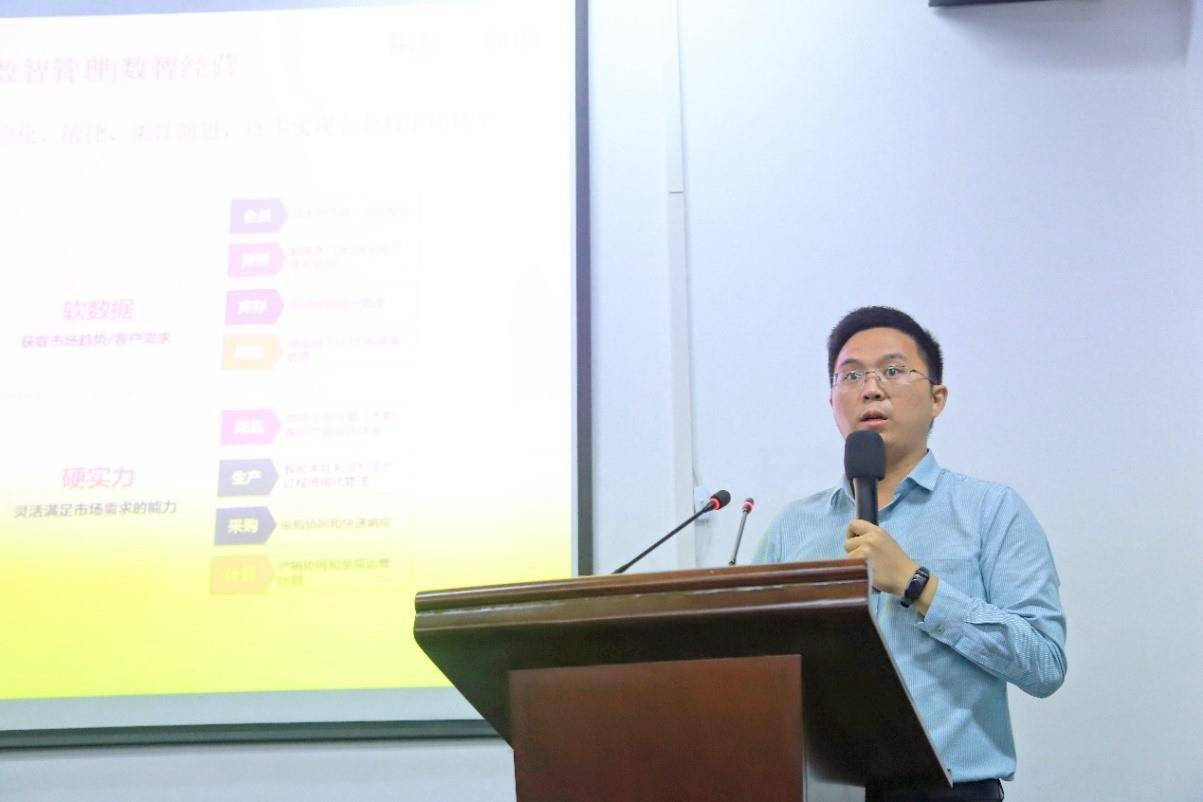 其次,新道科技股份有限公司陈海浩总经理发表“企业视角下数智经济时代商贸专业(群)建设的探索与实践”主题演讲。从数智经济时代企业转型与发展、数智时代商贸人才培养创新、数智时代商贸专业群建设思路、实践案例与产业资源服务保障四个方面介绍数智化转型背景下商贸专业群建设。