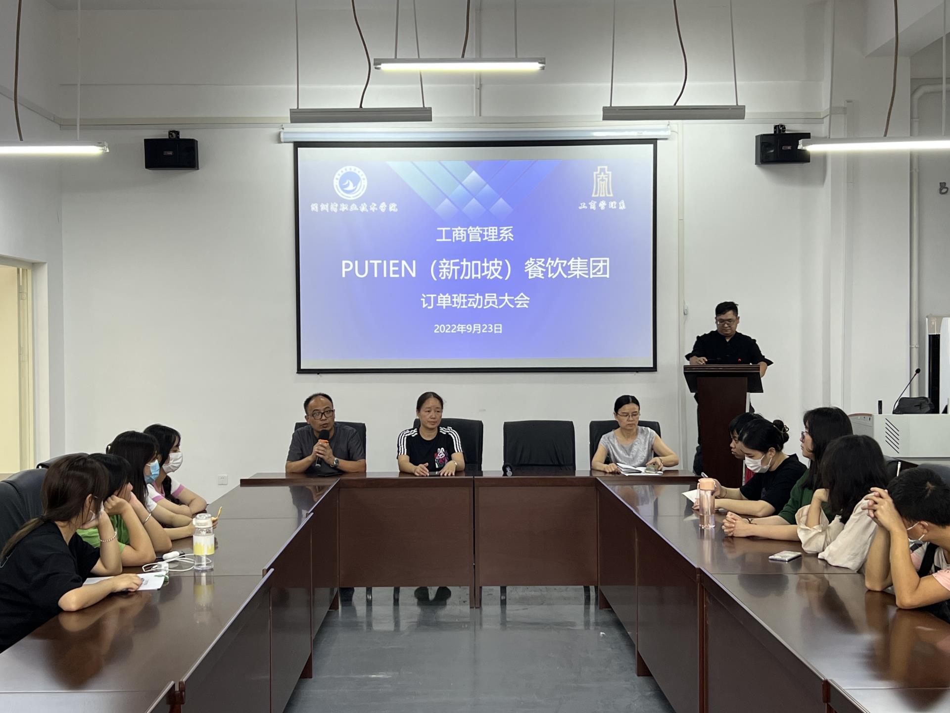 为促进校企深度合作,培养学生的职业素养、职业意识和职业精神。2022年9月23日下午在工商楼南301开展莆田(新加坡)餐饮集团订单班动员大会。工商管理系主任方丰霞、系副主任徐建,黄智萌、系校企合作办主任郭力菠及21级部分同学出席此次会议,会议由郭力菠老师主持。