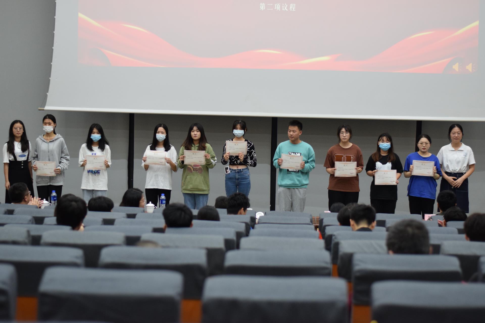 会议第二议程,用小视频的方式从衣、食、住、行、四个方面展示了十佳宿舍的同学们在社区的日常生活。然后,由朱雅鑫老师以及辅导员分别为十佳宿舍、优秀宿舍颁奖。接着,由施琳、熊湘、蔡鑫怡、周宇诗四位同学进行才艺表演。