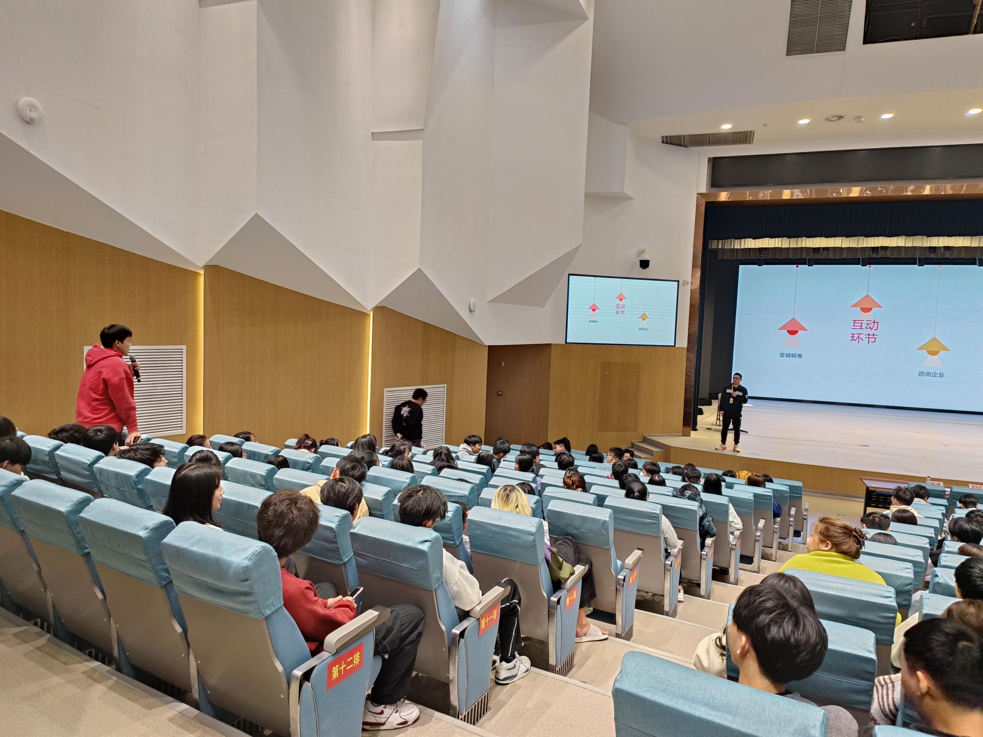 首先由主持人宣布毕业生顶岗实习双选会正式开始。分别由副主任黄智萌、徐建对顶岗实习的发言,讲解到顶岗实习时候的注意事项,勉励学生要珍惜实习机会,迅速完成角色转变。要谦虚谨慎,明确目标,不断学习,积累经验,成为符合企业需要的高素质技术技能型人才。接着由青春之家公司总监李剑青通过小游戏与我系学子互动,从而引入对行业、企业、事业三个板块的内容以及对学生的疑惑进行解答,使企业和学生互相了解、互相认可。紧接着由系主任方丰霞送实习前的祝福。最后有想要去青春之家公司实习了解的学生递交简历并与公司负责人进一步交流了解。