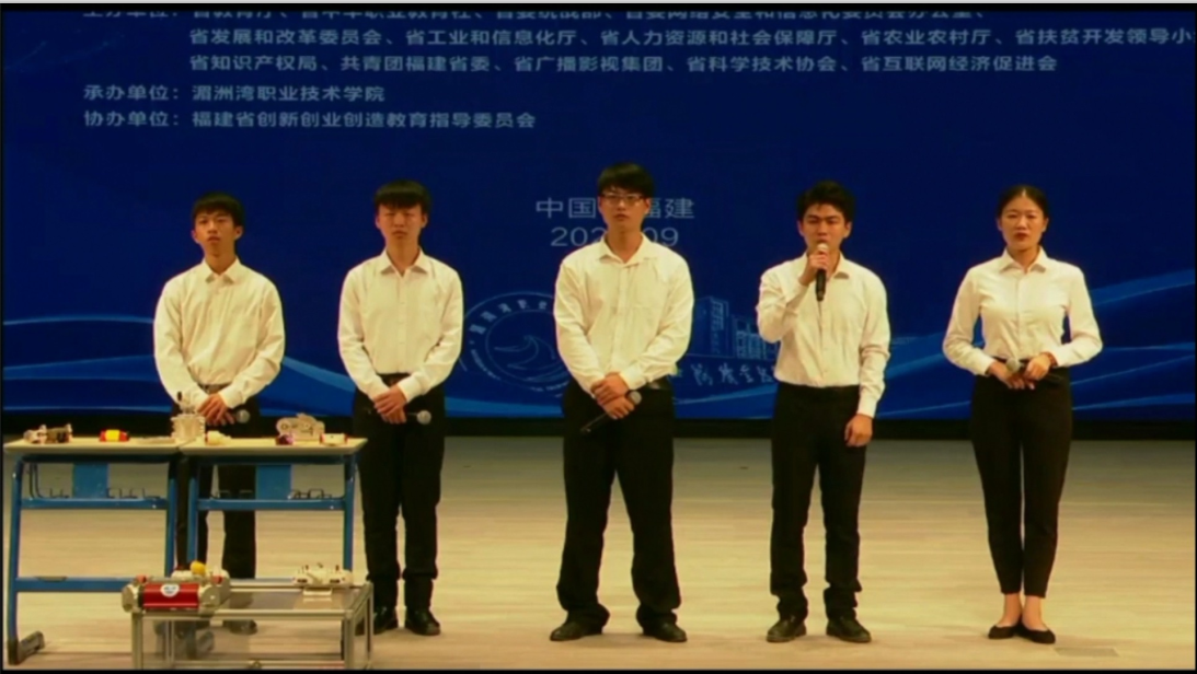 图5 营销专业学生李嘉伟(右二)参加2020年福建省互联网+创新创业大赛获金奖