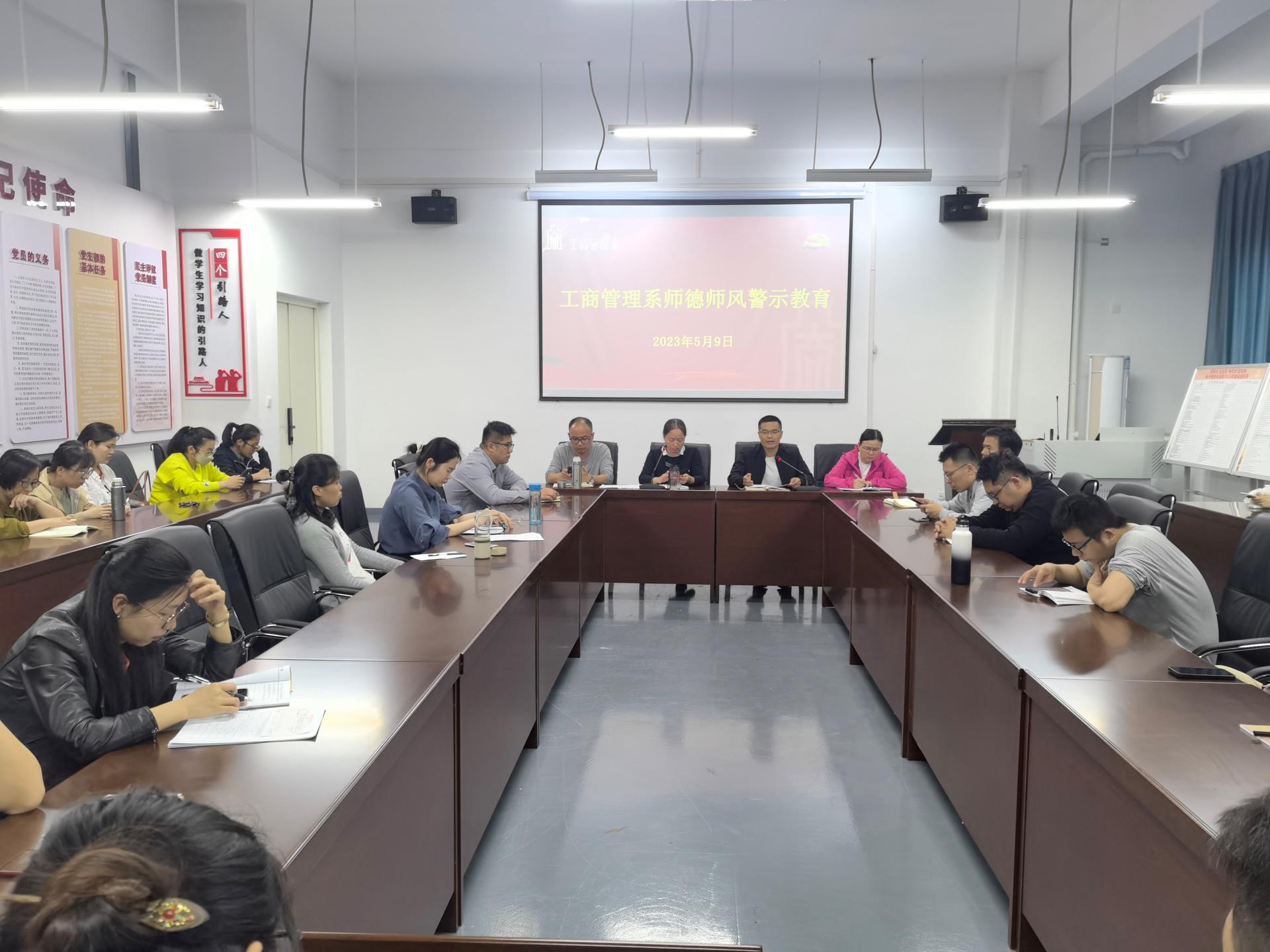 2023年59日下午两点半,工商管理系在工商楼南301召师德师风警示教育。会议由工商系党总支书记许志敏主持,全系教职工参加会议。